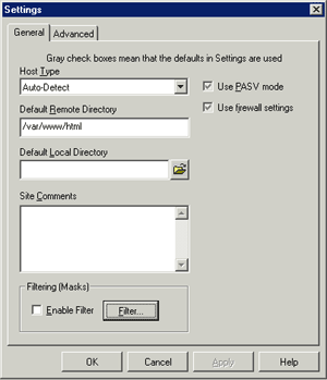 Tab Generel > Default Remote Directory -> add /var/www/html for connect into directory html > OK