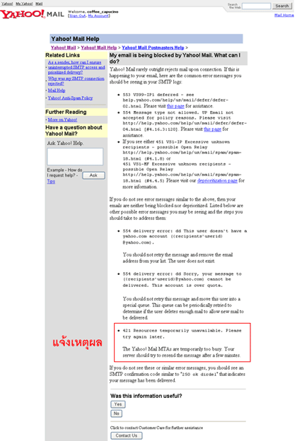 If you send mail to yahoo.com and received the mail return from server -> show topic "Message Delivery Delay"