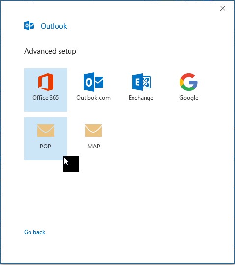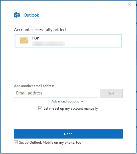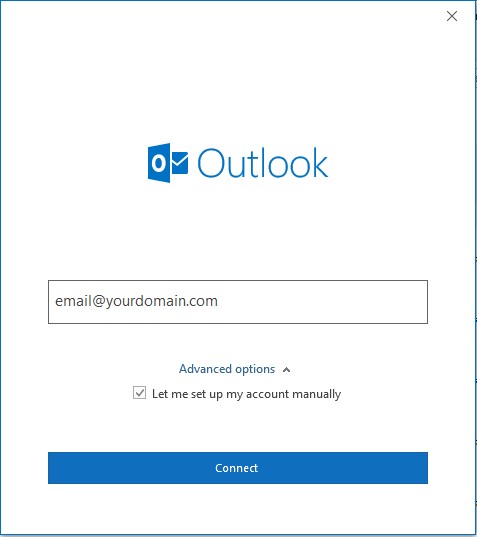 2. Fill your email such as email@yourdomain.com and Advanced options Press / Let me setup my account manually as following picture.