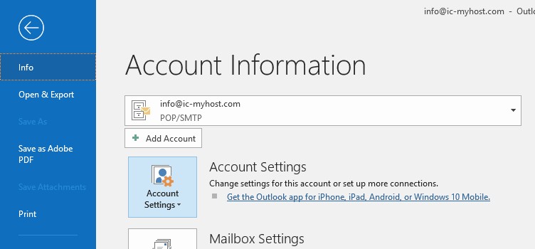 1. Click in menu File --> Account Information then press Add Account as following picture.