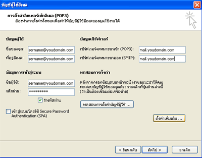 Incoming Mail Server (POP3) : mail.youdomain.com