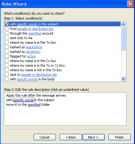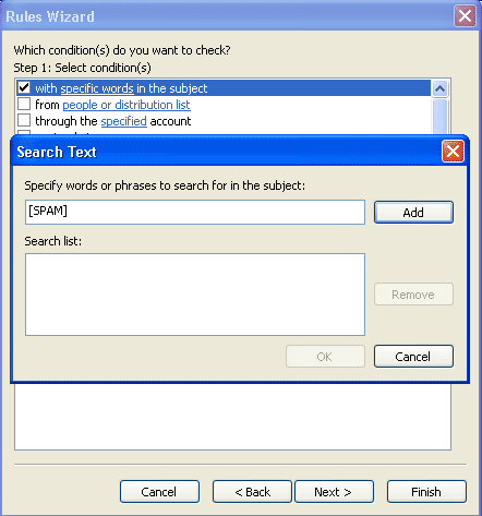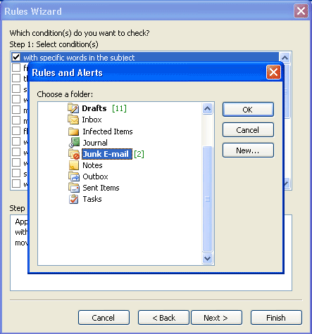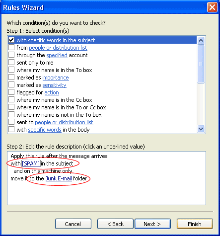 Then click Finish. When you received the email spam, outlook will move messages with specific words in the subject to folder junk e-mail automatically.
