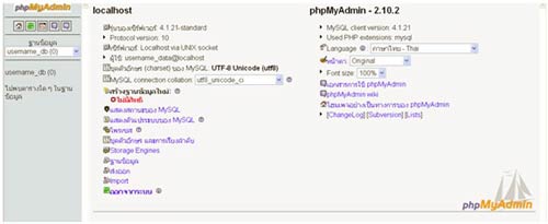 ทําการใส่รายละเอียดเพื่อ login เข้าสู่ระบบ PhpMyAdmin เท่านี้ก็เข้ามาจัดการระบบฐานข้อมูลได้ดังต้องการ