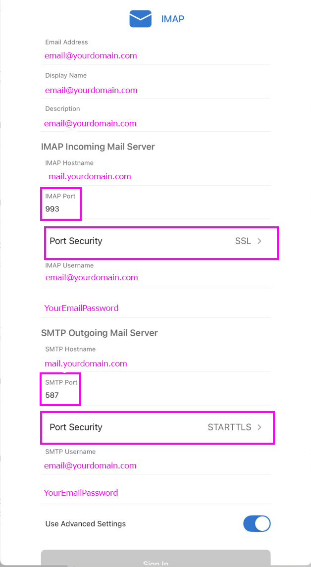 IN : / SSL/TLS :: 995 OUT : STARTTLS :: 587 / my authen same incoming