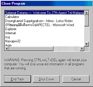 รูปที่ 1 โปรแกรม Task Manager ของระบบปฏิบัติการวินโดวส์ 98