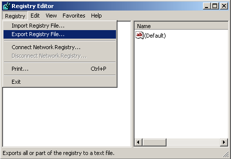 ซึ่งแอพพลิเคชั่นต่างๆ ที่อยู่ในโฟลเดอร์เหล่านี้จะถูกระบบปฏิบัติการวินโดวส์เอ็กซิคิวต์ทันทีที่ระบบเริ่มต้นใช้งาน นอกจากนี้แล้วอีกตำแหน่งที่มี 3-6 เรจิสทรีย์ที่เริ่มต้นใช้งานโดยอัตโนมัติคือในตำแหน่ง HKEY_CURRENT_USERSOFTWAREMicrosoftWindowsCurrentVersion เมื่อเข้าถึงตำแหน่งของเรจิสทรีย์คีย์ที่ได้กล่าวมาแล้ว ให้สังเกตจำนวนแอพพลิเคชั่นที่อยู่ในนั้นเปรียบเทียบกับจำนวนแอพพลิเคชั่นที่ถูกเปิดเมื่อระบบปฏิบัติการเริ่มต้นใช้งาน โดยดูจากจำนวนไอคอนที่อยู่ใน system tray หมายเหตุ system tray อยู่บริเวณมุมล่างด้านขวามือของหน้าจอวินโดวส์ข้างนาฬิกา และจะมีไอคอนเล็กๆ อยู่ในนั้น ถ้าในโฟลเดอร์ HKEY_LOCAL_MACHINESOFTWARE ประกอบด้วยโฟลเดอร์ของโปรแกรมที่น่าสงสัย เช่นสะกดชื่อบริษัทผิดๆ หรือผิดหลักไวยกรณ์ ให้ทำการตรวจสอบดูว่าโปรแกรมดังกล่าวนั้นไวรัสเป็นผู้ทำการติดตั้งหรือไม่ อาจจะอ้างอิงจากคู่มือหรือค้นหาจากอินเทอร์เน็ต เป็นต้น ถ้ามั่นใจว่าโปรแกรมนั้นเป็นไวรัสจริงก็ให้ทำการลบโปรแกรมดังกล่าวนั้นออกจากเรจิสทรีย์ แต่ต้องจำไว้เสมอว่าการแก้ไขค่าในเรจิสทรีย์อาจจะนำมาซึ่งความเสียหายของระบบได้ ต้องใช้ความระมัดระวังให้มาก และก่อนจะแก้ไขควรทำการสำรองเรจิสทรีย์ด้วย อีกหนึ่งหนทางที่ไวรัสใช้ในการกระจายตัวเองได้โดยจะแก้ไขเรจิสทรีย์ที่เกี่ยวข้องกับนามสกุลของไฟล์ทั่วๆ ไป ให้รันด้วยโปรแกรมของไวรัสเอง ตัวอย่างของนามสกุลของไฟล์ทั่วๆ ไปเช่น .EXE .DLL .COM เป็นต้น ซึ่งในระบบปฏิบัติการวินโดวส์นั้นมีเรจิสทรีย์คีย์ที่ชื่อ /HKEY_CLASSES_ROOT สำหรับเก็บค่าว่าไฟล์ที่มีนามสกุลใดให้รันด้วยแอพพลิเคชั่นใด เช่นไฟล์ที่มีนามสกุล .DOC ให้รันด้วยโปรแกรมไมโครซอฟต์เวิร์ด (MS Word) เป็นต้น การสำรองเรจิสทรีย์อยู่เสมอเป็นหนทางที่จะช่วยกู้ระบบคืนหลังจากระบบทำงานผิดพลาดอันเนื่องมาจากการแก้ไขเรจิสทรีย์ผิดพลาด ทั้งนี้อาจจะมีสาเหตุจากไวรัสแก้ไขเองหรือผู้ใช้เป็นผู้แก้ไขเอง วิธีการในการสำรองเรจิสทรีย์โดยการส่งค่าเรจิสทรีย์ออกมาเก็บไว้เป็นไฟล์ หรือเรียกว่าการ export นั่นเอง ทำได้โดยเลือกเมนู Registry -> Export Registry File ดังรูปที่ 5 จะปรากฏไดอะล็อกดังรูปที่ 6 จากนั้นจึงทำการป้อนชื่อที่จะบันทึกแล้วกด Save เป็นอันเสร็จขั้นตอนการสำรองเรจิสทรีย์ เมื่อทำการสำรองเรจิสทรีย์แล้วการเรียกเรจิสทรีย์ที่สำรองไว้มาใช้งานทำได้โดยเลือกเมนู Registry -> Import Registry File ดังรูปที่ 7 และจะปรากฏไดอะล็อกดังรูปที่ 8 แล้วเลือกไฟล์ที่ต้องการจะเรียกใช้ จากนั้นจึงกดปุ่ม Open รูปที่ 5 แสดงการ Export เรจิสทรีย์ รูปที่ 6 แสดงไดอะล็อกเพื่อเลือกไฟล์ที่จะใช้สำรองเรจิสทร
