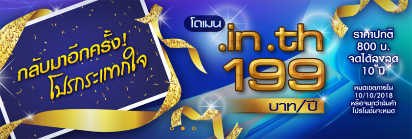 2. .in.th สามารถสั่งซื้อจดได้สูงสุด 10 ปี (จะได้ราคาปีละ 199 บาท)