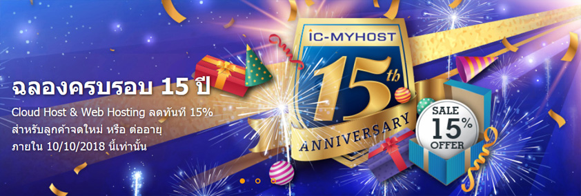 5. Domain .in.th 199 บาท/ปี และ Cloud Host & Web Hosting ต้องแจ้งชำระเงินภายใน 10 ตุลาคม 2561 นี้เท่านั้น ถึงจะได้รับสิทธิ์ "Promotion ครบรอบ 15 ปี"